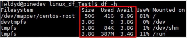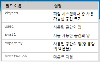 - 시스템에 마운트된 하드디스크의 남은 용량을 확인할 때 사용하는 명령어