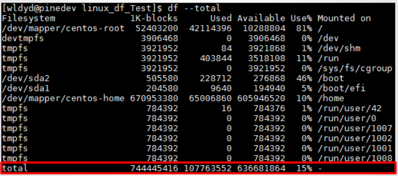 - 기본적으로 1,024Byte 블록 단위로 출력하여, 옵션을 통해 다른 단위로 출력 가능
