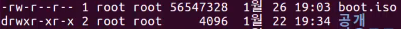 boot.iso와 같은 일반 파일은 맨앞에 "-"가 붙고 "공개"라는 디렉토리 파일은 맨앞에 "d"가 붙는다. -a : 숨김 파일까지 볼 수 있는 옵션