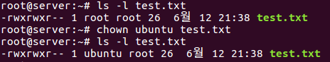 chown ubuntu test.txt 명령어를 사용하여 root 소유에서 ubuntu 사용자의 소유로 변경 파일의 그룹을 변경하고 싶을때