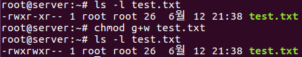 chmod g+w test.txt 명령어를 사용하여 그룹권한 추가 파일의 소유자를 변경하고 싶을때