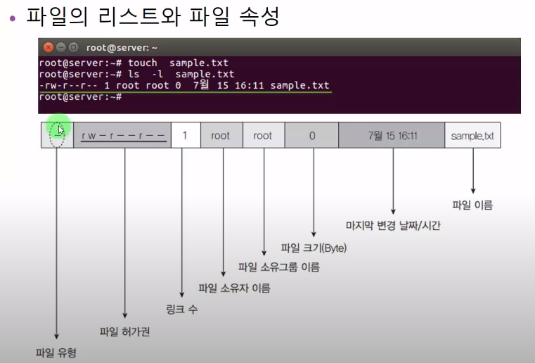 - 디렉토리일 경우에는 d, 일반적인 파일일 경우에는 "-" 가 표시