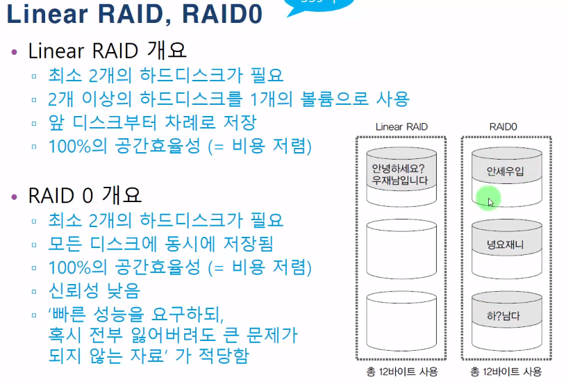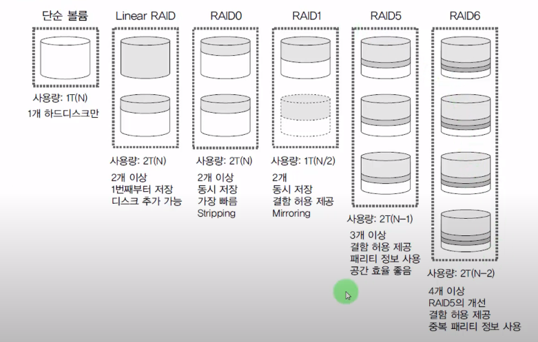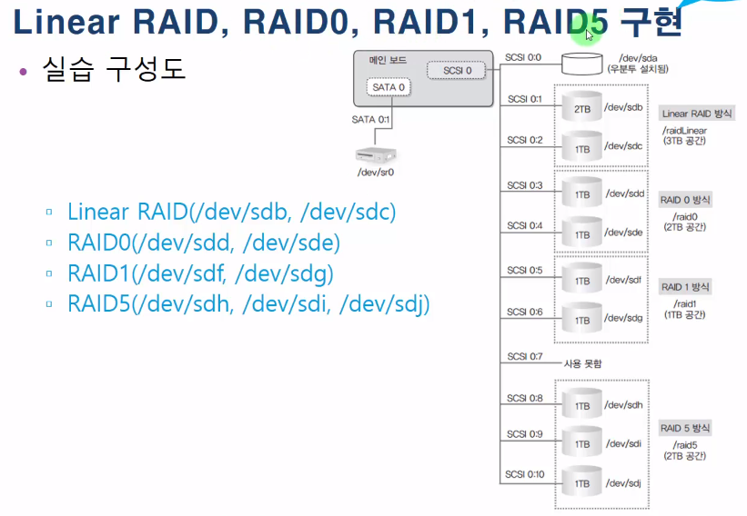 6장 4교시 : Linear RAID, 0, 1, 5 문제 발생 및 원상 복구 (0) 2020.07.04 6장 3교시 : Linear RAID, 0, 1, 5 구축 (0) 2020.07.01 6장 1교시 : SATA/SCSI 장치 개요, 하드디스크 1개 추가 (0) 2020.06.28 5장 1교시 ~ 3교시 : X 윈도를 사용해보자 (0) 2020.06.28 리눅스 마스터 2급 파티션 (0) 2020.06.25