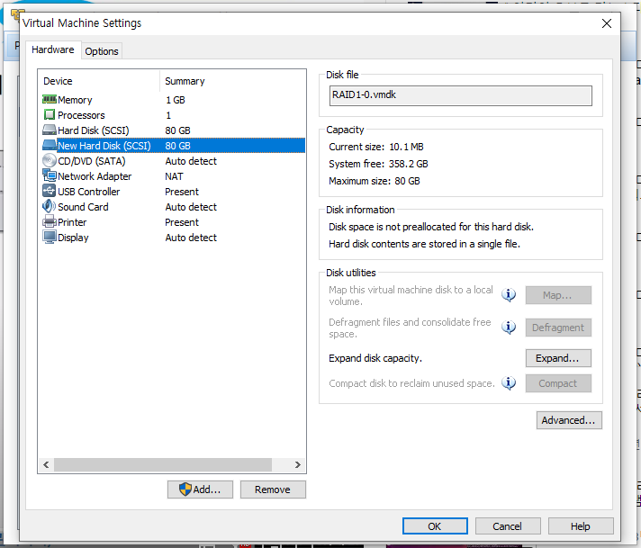 7. 보기와 같이 나머지 디스크 똑같이 설정해 주기 https://www.youtube.com/watch?v=SLZA78bq0qc&list=PLVsNizTWUw7H0hL3MIk4POxadZVwNOycL&index=29