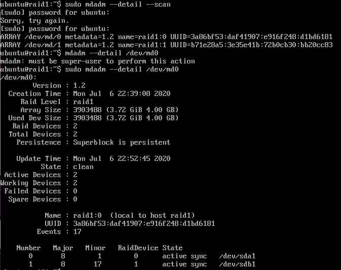 11. sudo mdadm --detail /dev/md0의 정보 확인