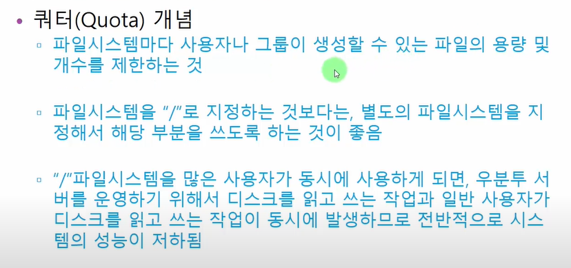 11.1. apt-get -y install quota //쿼터 패키지 설치