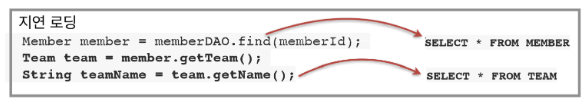 지연 로딩이란 실제 객체 대신 프록시 객체를 로딩해두고 해당 객체를 실제 사용할 때 셩속성 컨텍스트를 통해 데이터를 불러오는 방법입니다.